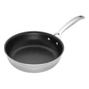 Instructions for useThe recommendations for care and use apply to all Le Creuset 3-ply stainless steel products.BEFORE FIRST USERemove all packaging and labels, wash pans in hot soapy water, rinse and dry thoroughly.FRYINGWhen frying in an uncoated pan for the first time or whenever the pan has been cleaned in the dishwasher prepare the pan as follows: * Add some oil so that the base is covered. * Match the pan base size to the hotplate to be used. Always use a dry oven glove or cloth when handling hot pans during and after cooking. Never heat an empty pan.
